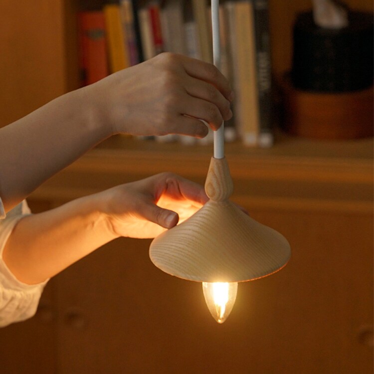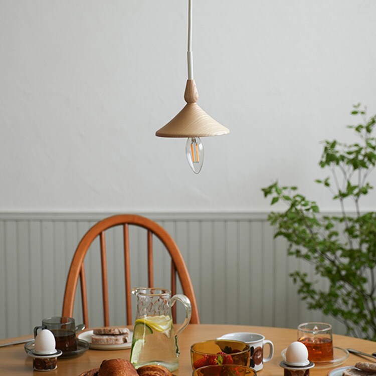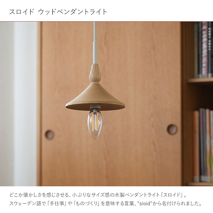 どこか懐かしさを感じさせる、小ぶりなサイズ感の木製ペンダントライト「スロイド」。
