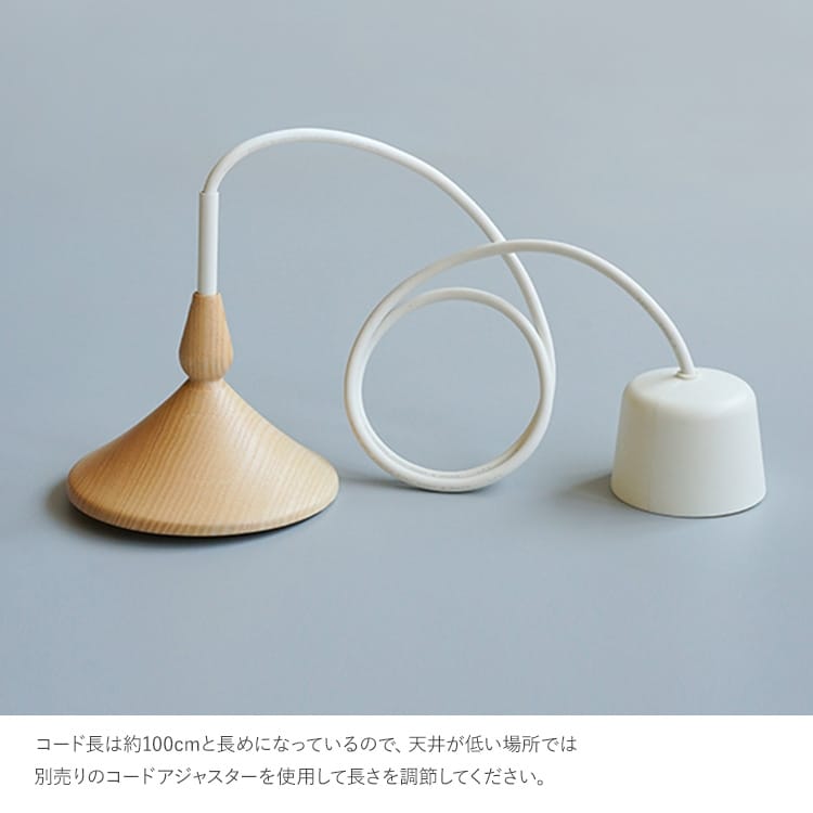 コード長は約100cmと長めになっているので、天井が低い場所では別売りのコードアジャスターを使用して長さを調節してください。