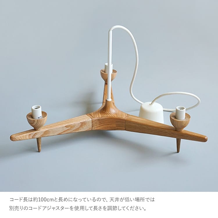 コード長は約100cmと長めになっているので、天井が低い場所では別売りのコードアジャスターを使用して長さを調節してください。