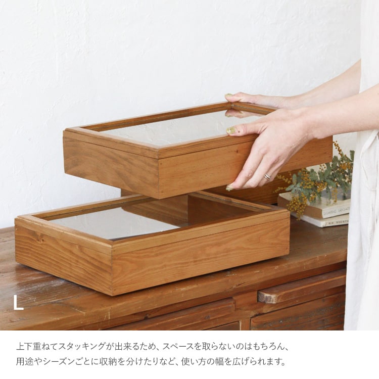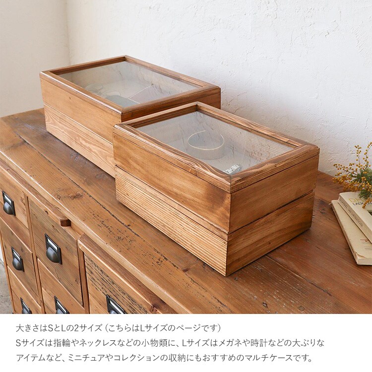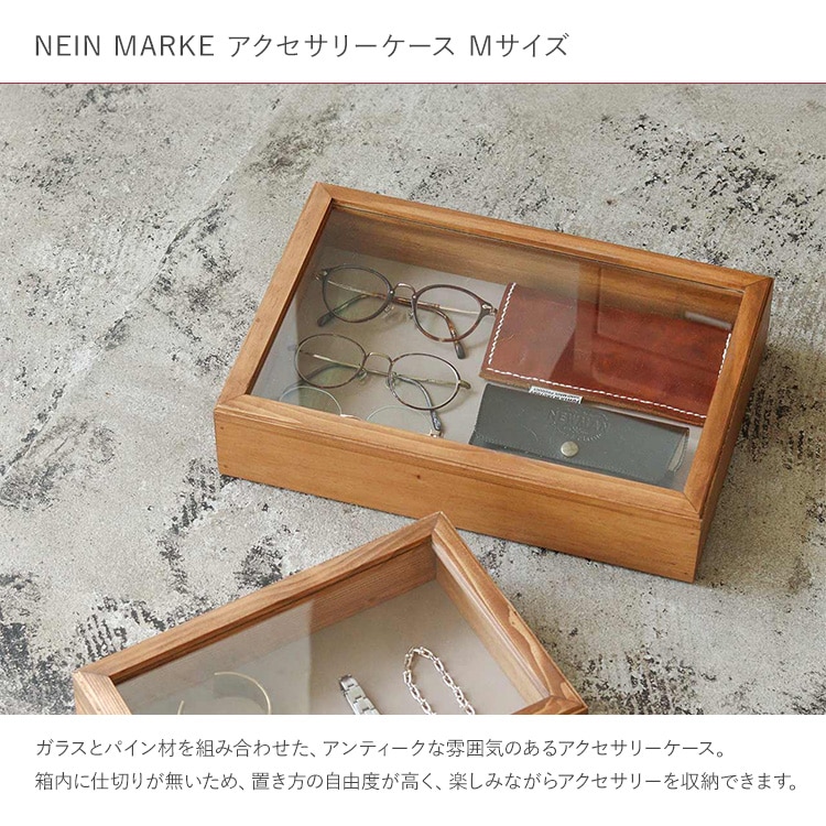 NEIN MARKE ナインマーケ パイン アクセサリーケース Lサイズ 木製 収納 アンティーク マルチケース ボックス ガラス窓 北欧 シンプル ギフト プレゼント 眼鏡 グラス 時計
