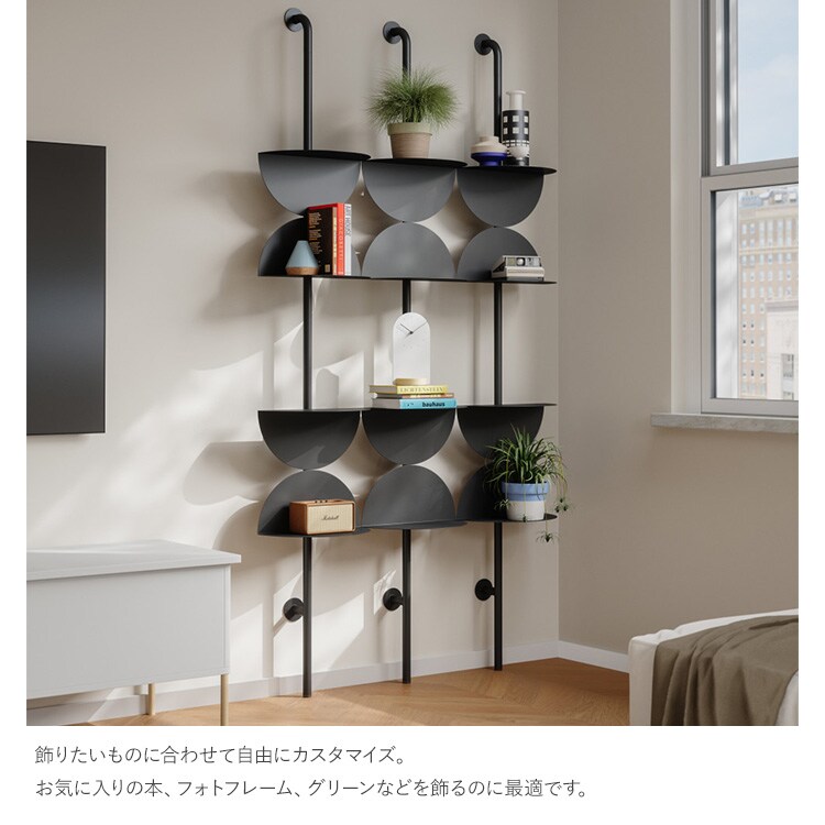 飾りたいものに合わせて自由にカスタマイズできる、スタイリッシュなウォールシェルフ。