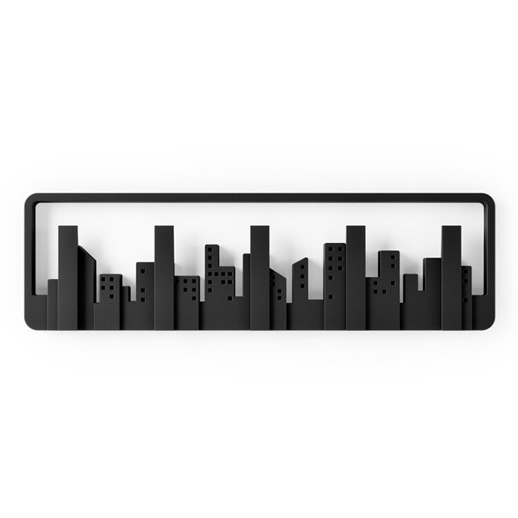 都会の街並みを思わせる洗練された幾何学的なモチーフと、壁に窓があるかのような錯覚を生み出す独創的なデザインが空間に奥行きを与えます。