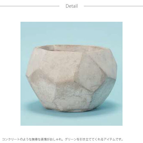 コンクリートのような無骨な表情がおしゃれ。グリーンを引き立ててくれるアイテムです。