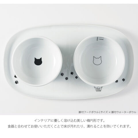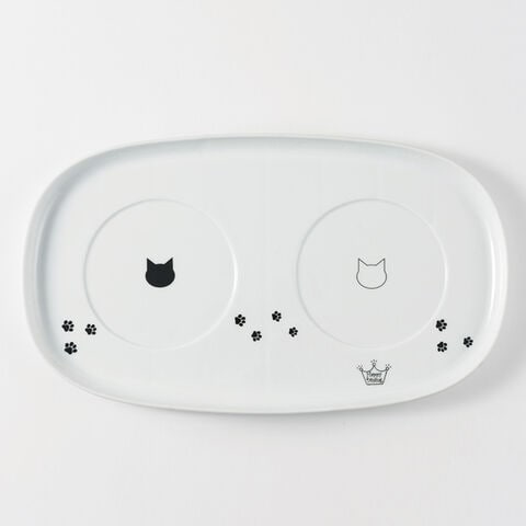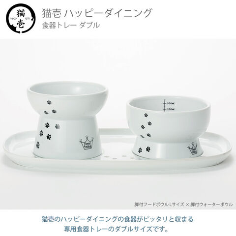 猫壱 ハッピーダイニング 食器トレーダブル DC-0751   猫用 食器トレー 皿 電子レンジ対応 食洗機対応 陶器 白 ペット