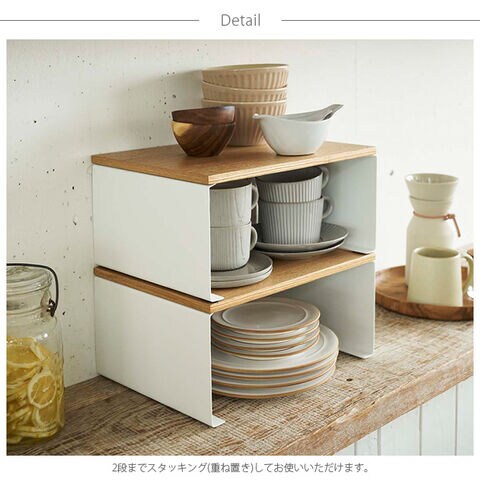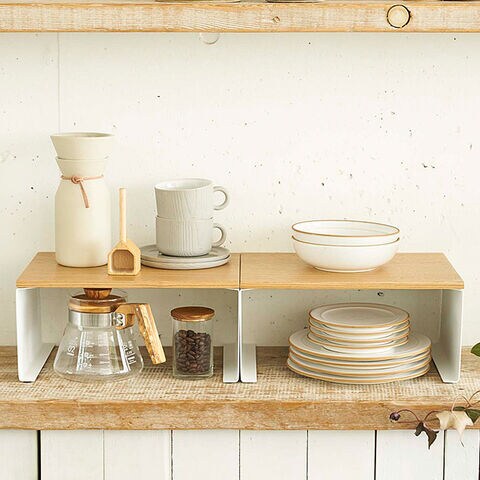散らかりがちなキッチン棚やキッチンカウンター上を省スペースに有効利用できます。