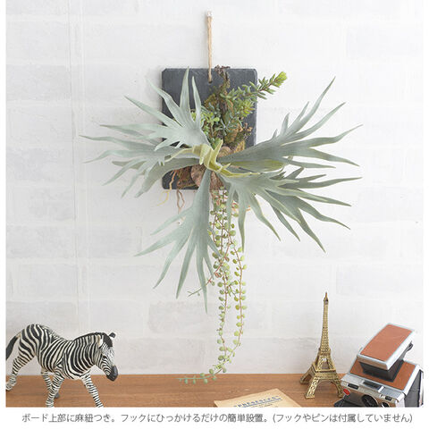 スレートボードとビカクシダを中心としたモチーフの組み合わせがおしゃれ。