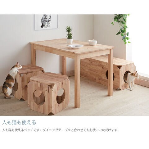 人も猫も使えるベンチです。ダイニングテーブルと合わせてもお使いいただけます。