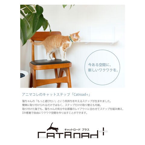 取り付けた後でも、猫ちゃんの気分やお部屋のレイアウトに合わせてステップを組み換え、DIY感覚で自由にワクワク空間を作り出すことができます。