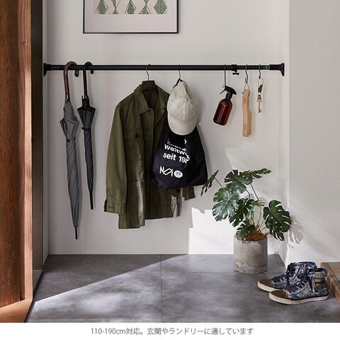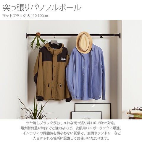 ■備考:ツヤ消しブラックがおしゃれな突っ張り棒110-190cm対応。