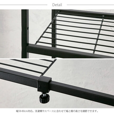 ・幅58-80cm対応。洗濯機やスペースに合わせて幅と棚の高さを調節できます。