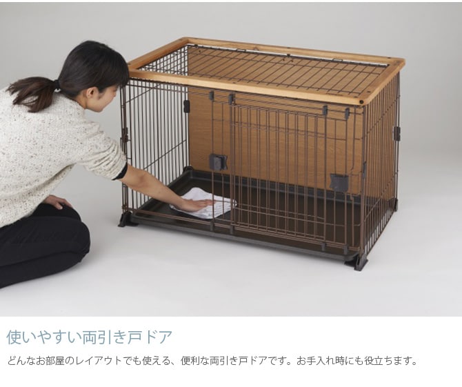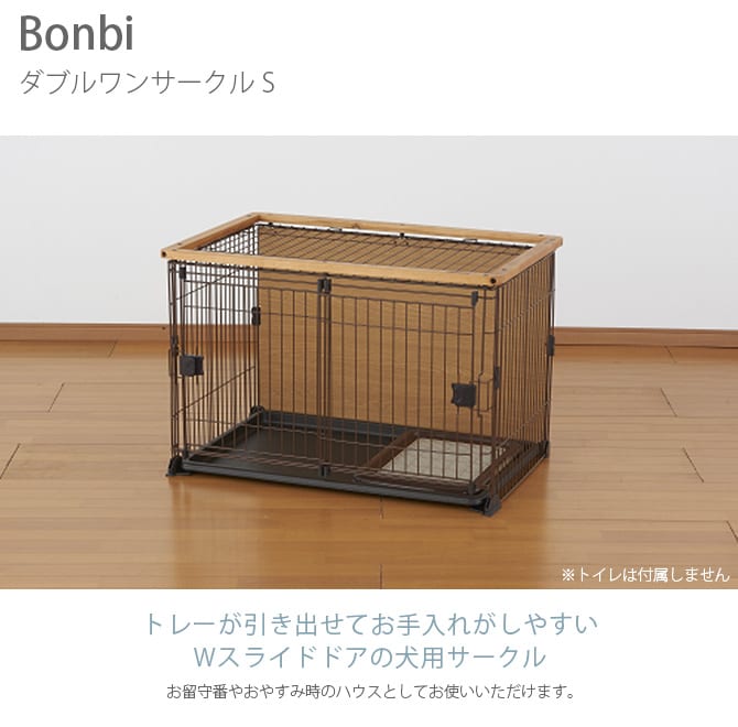■備考:トレーが引き出せてお手入れがしやすいWスライドドアの犬用サークルです。