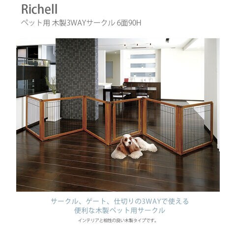 Richell リッチェル ペット用 木製3WAYサークル 6面90H