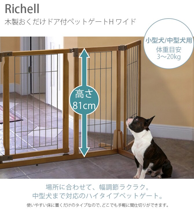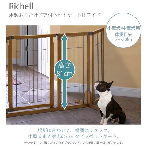 Richell リッチェル 木製おくだけドア付ペットゲートH ワイド ブラウン