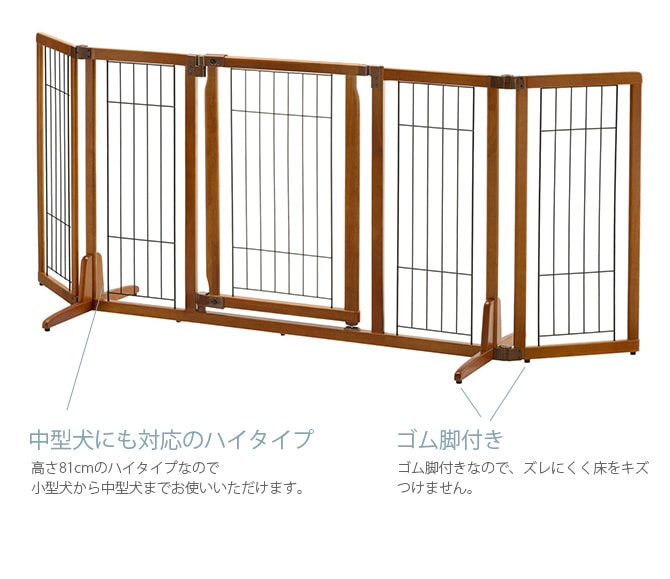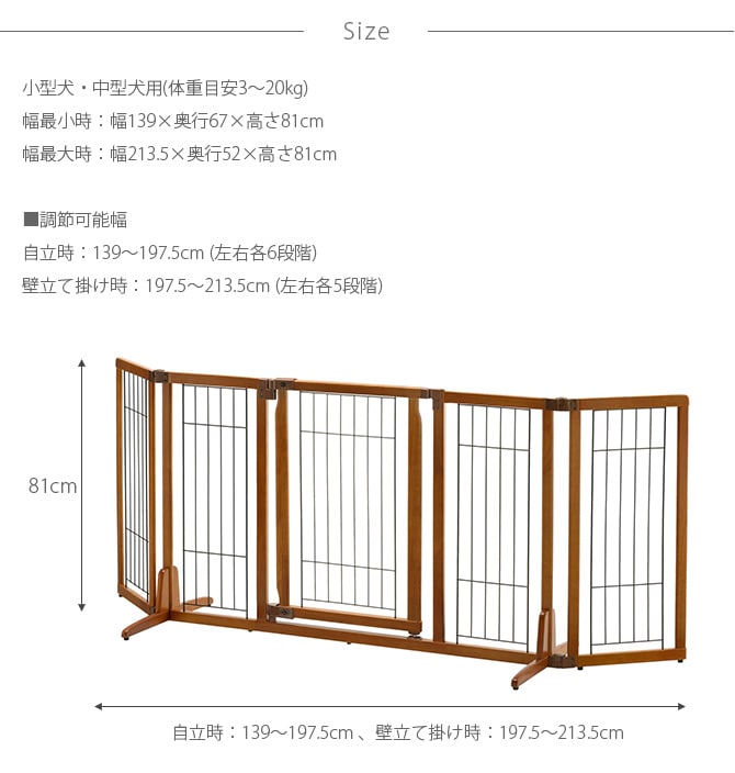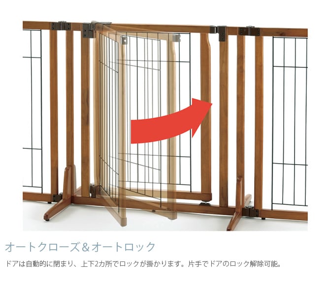 ■備考:場所に合わせて、幅調節ラクラク。中型犬まで対応のハイタイプペットゲート。