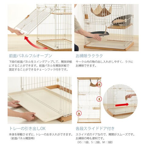 スライド式のドアなので、開閉がスムーズです。お掃除の時も便利です。(XS:1段、S:2段、M:3段)