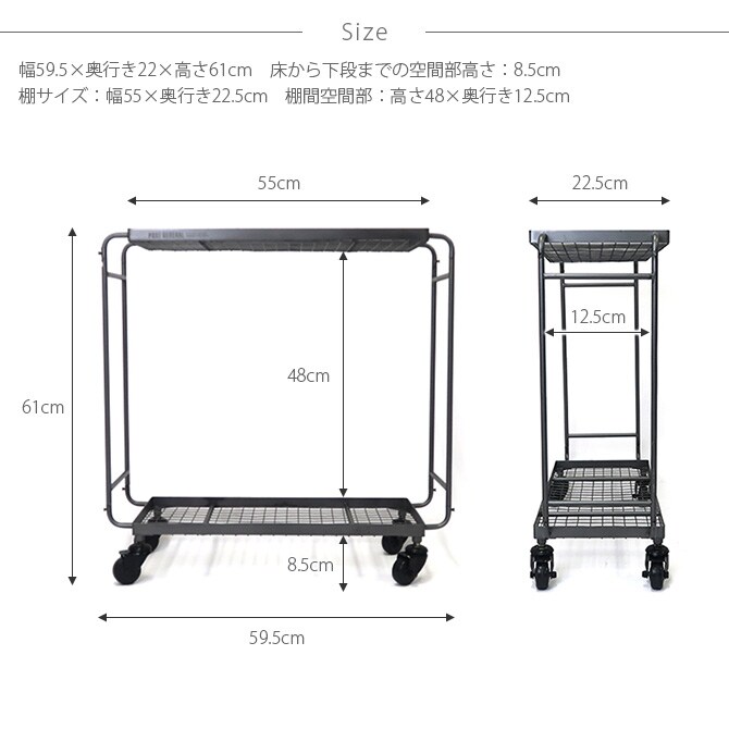 ■備考:同ブランド「ヘビーデューティーバスケットロング」サイズ対応のシェルフ型ワゴン。