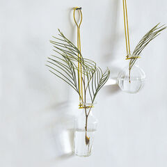 オブジェやグリーンを入れたり吊るしたりと、アレンジが楽しめるボトル型デザインです。
