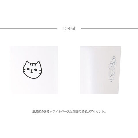 ・清潔感のあるホワイトベースに側面の猫柄がアクセント。