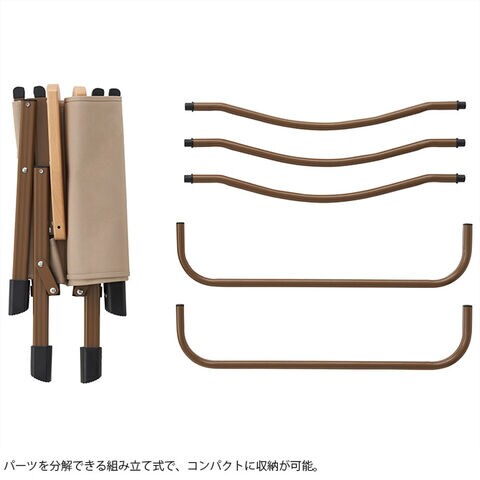 ゆったり広々と座ることのできる幅広サイズながら、パーツを分解してコンパクトに持ち運べる仕様。