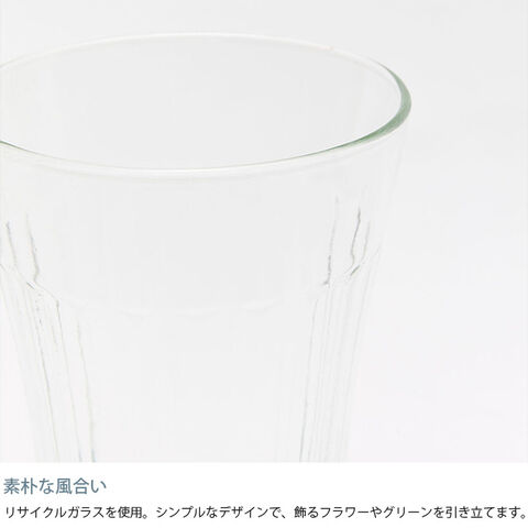 リサイクルガラスを使用。シンプルなデザインで、飾るフラワーやグリーンを引き立てます。