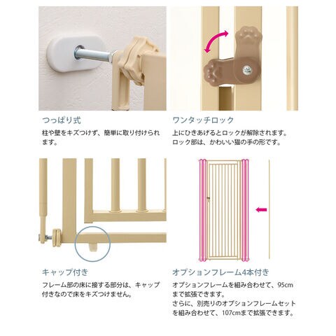 突っ張り式で簡単に取り付けが可能な片開きゲートです。