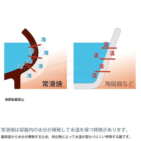 器表面から水分が揮発するため、気化熱によって水温が変わりにくい呼吸する器です。