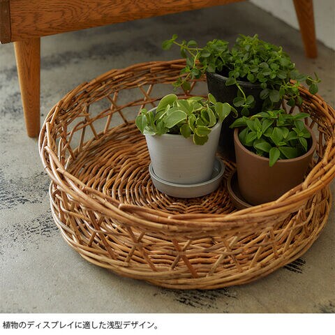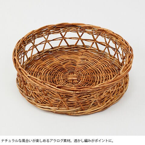 ■備考:透かし編みを施した、アラログ素材の浅型バスケット Lサイズ。