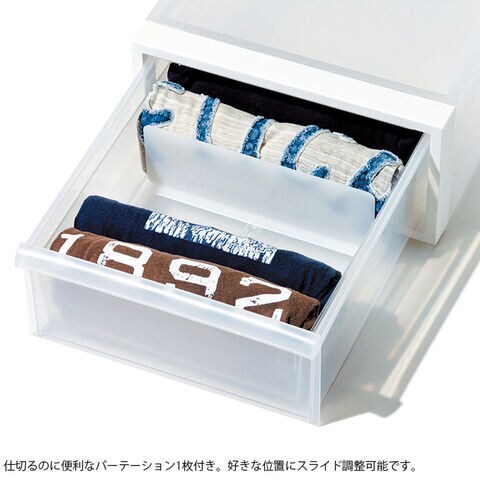 ・仕切るのに便利なパーテーション1枚付き。好きな位置にスライド調整可能です。