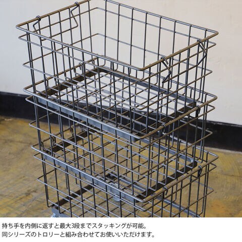 ■備考:鉄ならではの重厚感や無機質でインダストリアルな雰囲気が魅力のワイヤーバスケット。