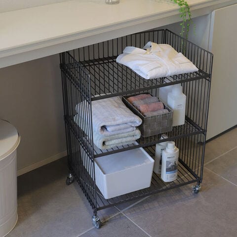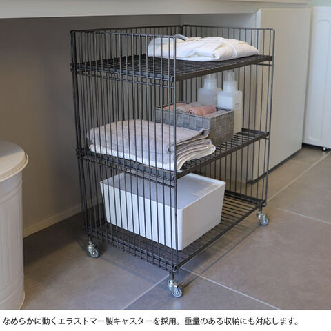 ■備考:鉄ならではの重厚感や無機質でインダストリアルな雰囲気が魅力のワイヤーワゴン。