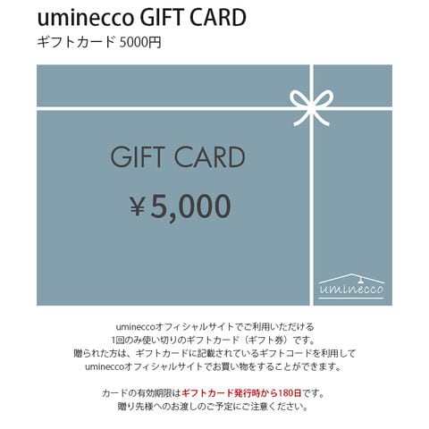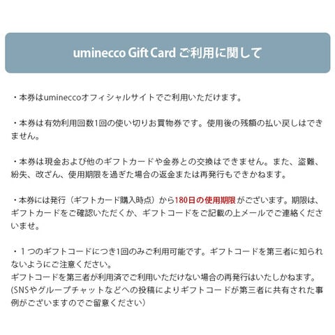 ■備考:umineccoオフィシャルサイトでご利用いただける1回のみ使い切りのギフトカード(ギフト券)です。