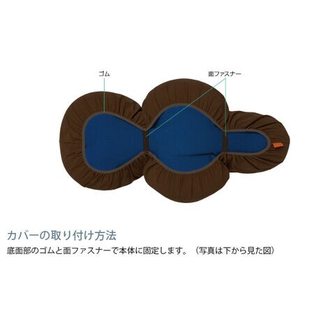 【カバーの取り付け方法】 底面部のゴムと面ファスナーで本体に固定します。(写真は下から見た図)