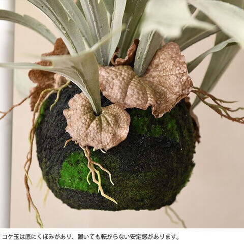 ・コケ玉は底にくぼみがあり、置いても転がらない安定感があります。