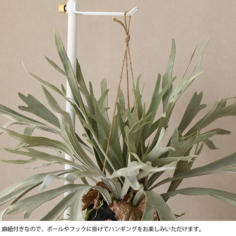 ・麻紐付きなので、ポールやフックに掛けてハンギングをお楽しみいただけます。