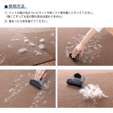 軽い力でこするだけで、タイルマットやカーペット、布ソファについたペットの毛を集めて取ることができます。