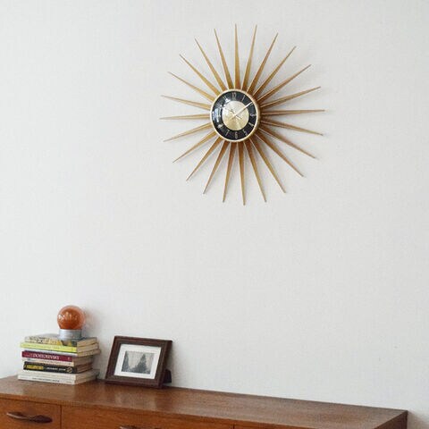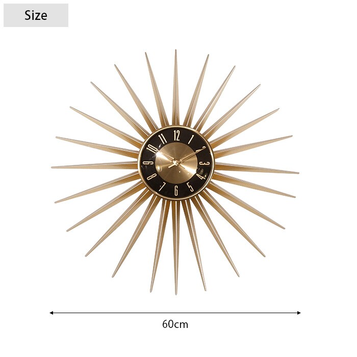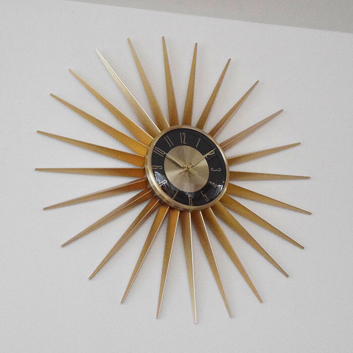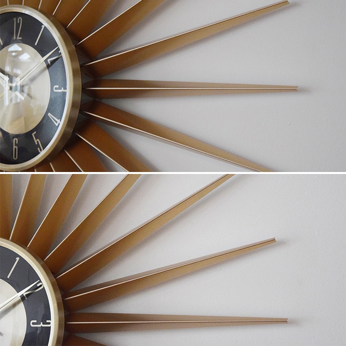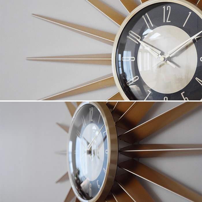 放射線状に広がるデザインが存在感のあるミッドセンチュリーテイストなウォールクロック。