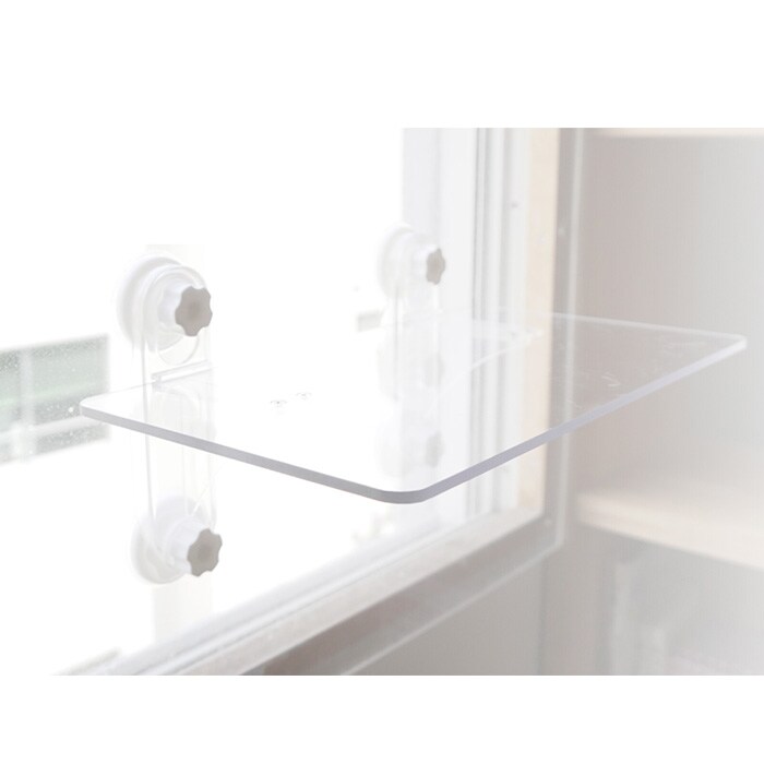 吸盤を窓に固定し天板と台座を引っ掛ける簡単取付!