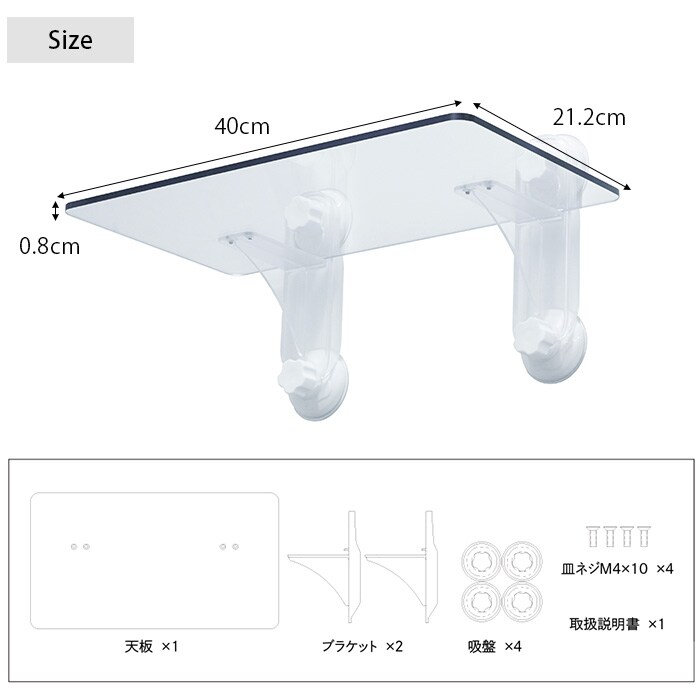 同梱部品:天板、ブラケット、吸盤、皿ネジ、取扱説明書