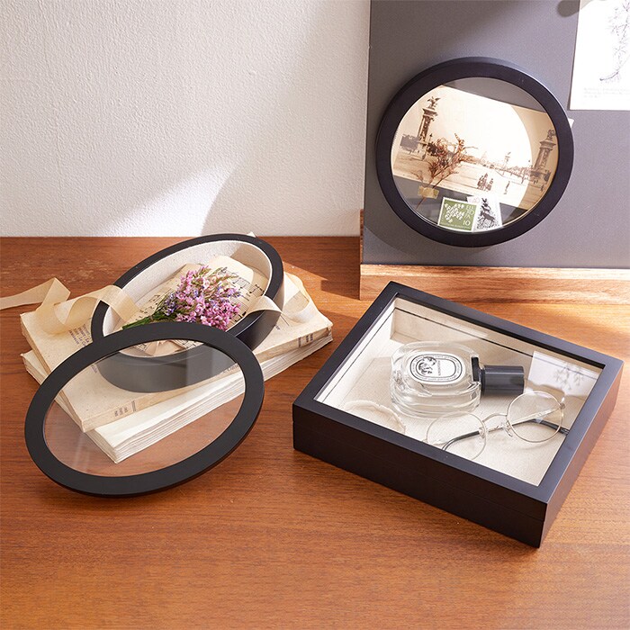■備考:小物をディスプレイ収納できる、内側にリネン生地を張ったコレクションケース サークル型。