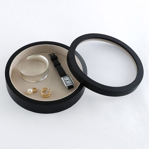 小物をディスプレイ収納できる、内側にリネン生地を張ったコレクションケース サークル型。