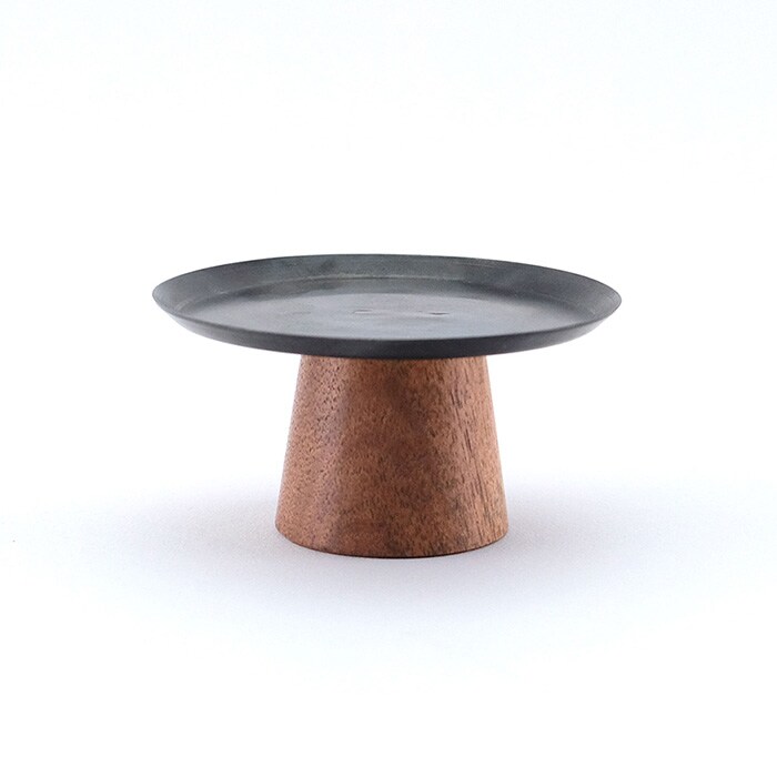 木とアイアンの異素材コンビがスタイリッシュなラウンド型のコンポート(脚付き飾り台)。