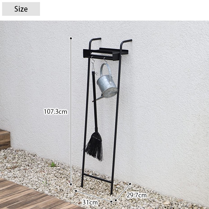 掃除道具やガーデンツールをおしゃれにすっきりと収納できます。