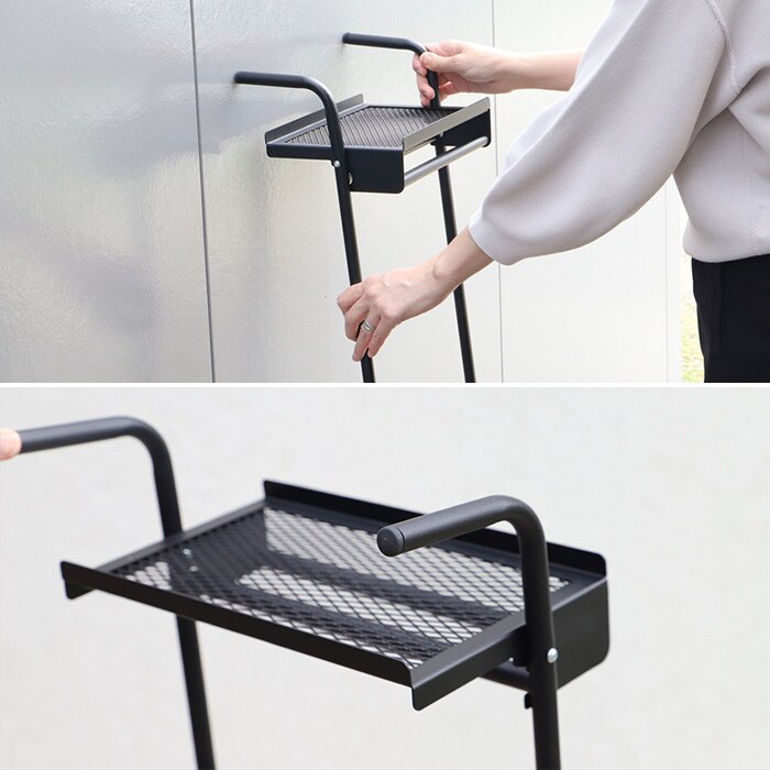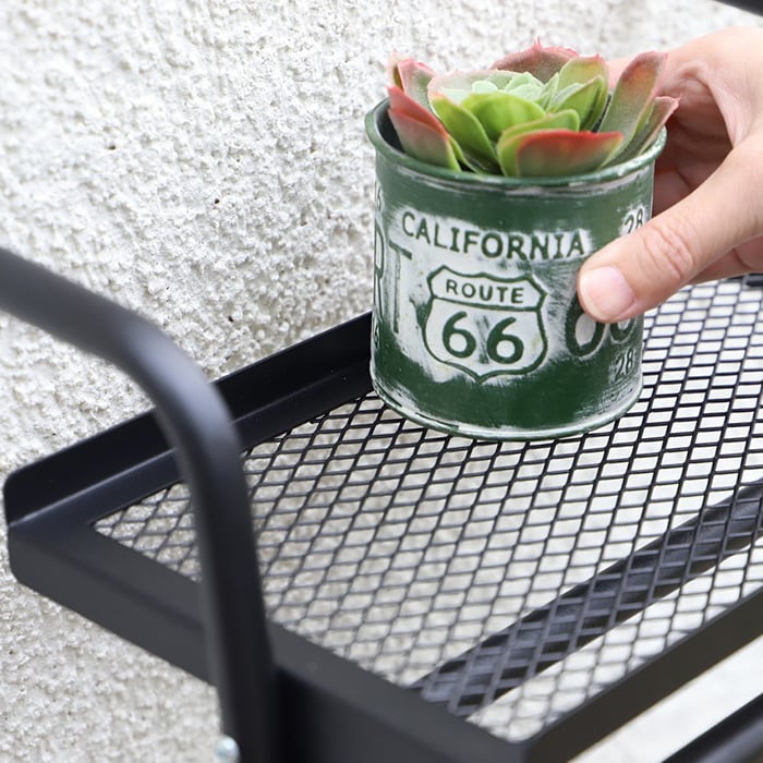 棚板は水がたまりにくいメッシュ構造。ポットやボトル等のディスプレイ収納に。
