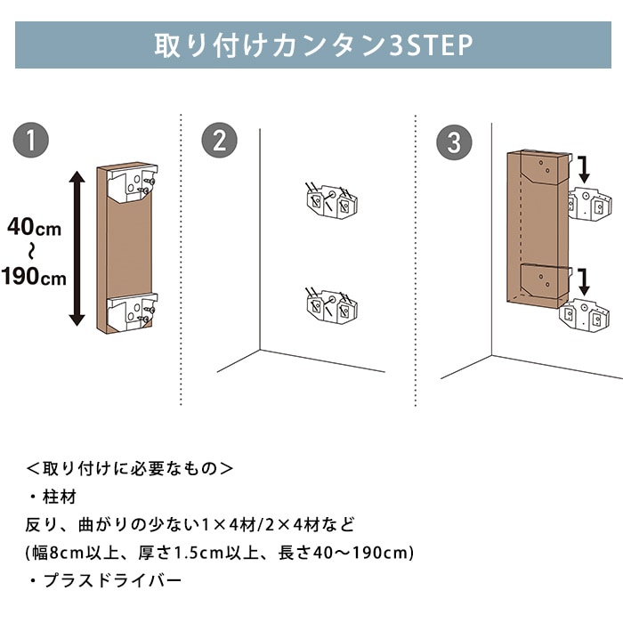 ※柱材に棚板を取り付ける場合は、棚板の奥行35cmまでの木材をご用意ください。