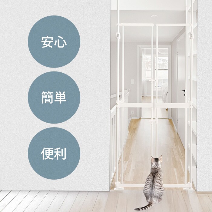 玄関や廊下、窓に設置できる猫用の脱走防止ゲート「にゃんドアクリア」