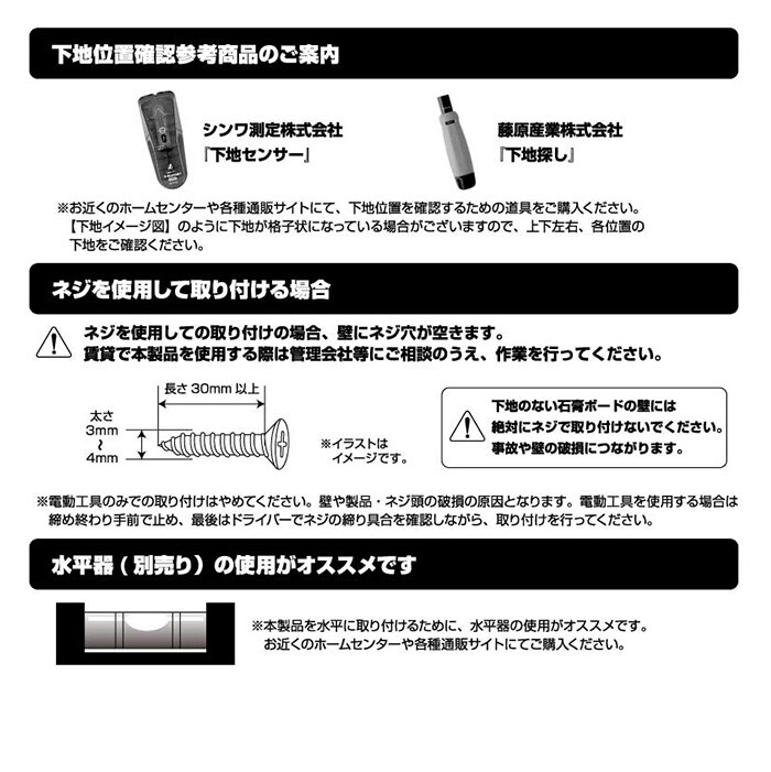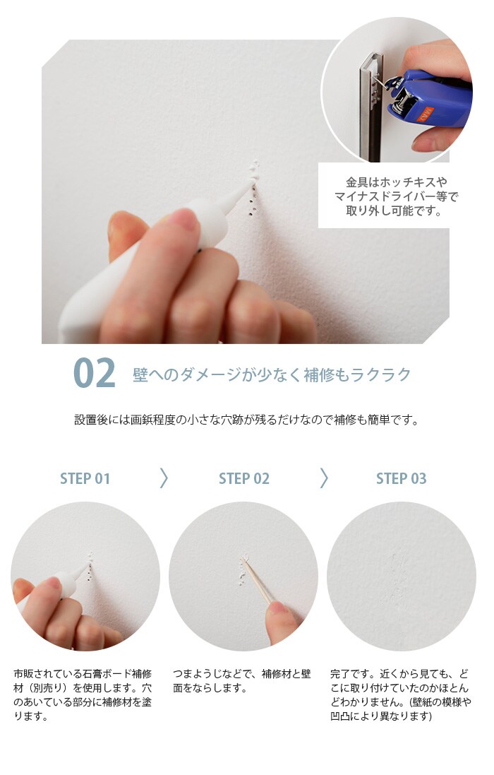 小さなピンを複数差し込んで取付けるため賃貸でもお使いいただけます。