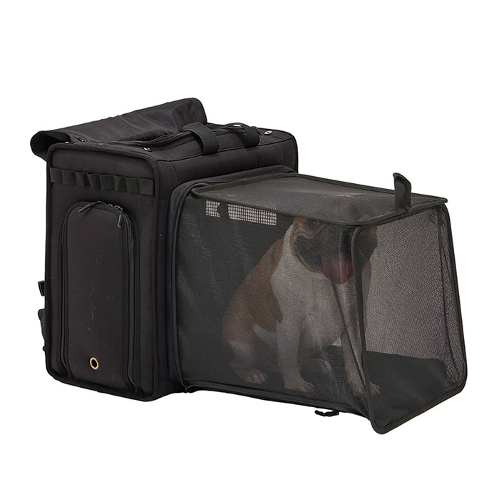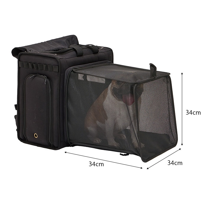 フロント面を拡張して簡易ケージにもなる2WAYキャリー。
