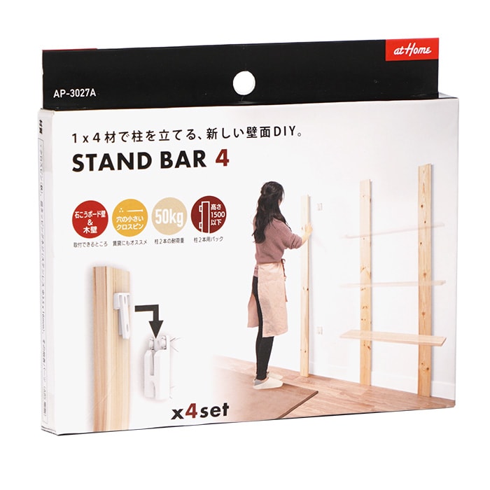 こちらは150cm以下の柱を2本固定できる、STAND BAR 4セット入りです。