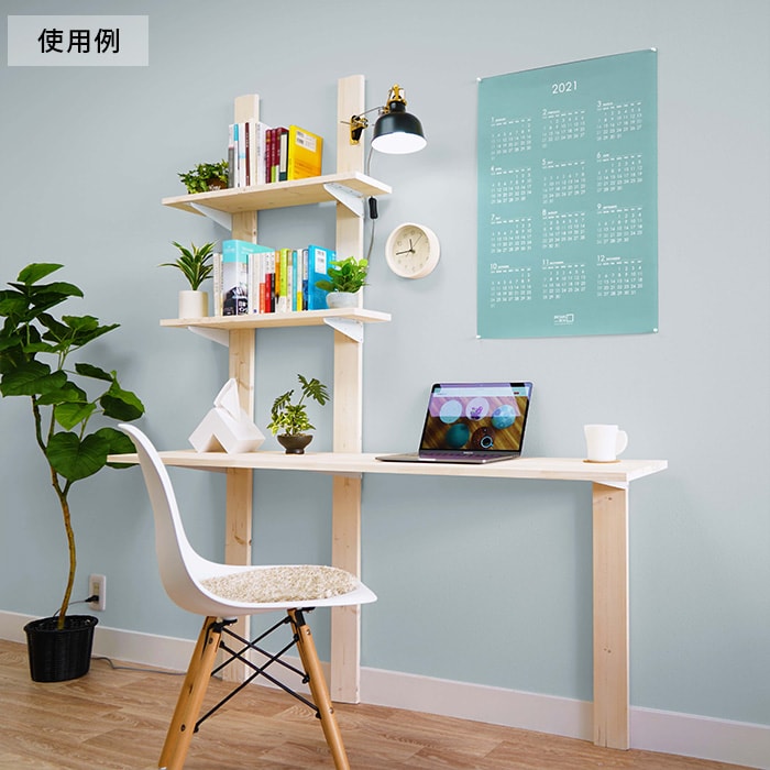 本製品とホームセンターで150cm以下の1×4材と棚板、別売の棚受けパーツ(SPFブラケット)などを組み合わせていただくことで、賃貸壁にも設置できる手作り棚やキャットステップをお作りいただけます。