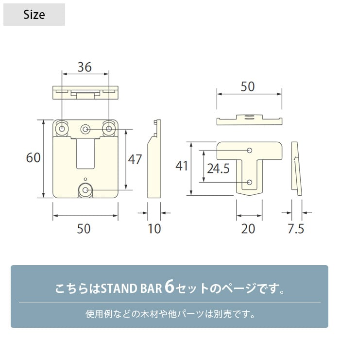 こちらは190cm以下の柱を2本固定できる、STAND BAR 6セット入りです。